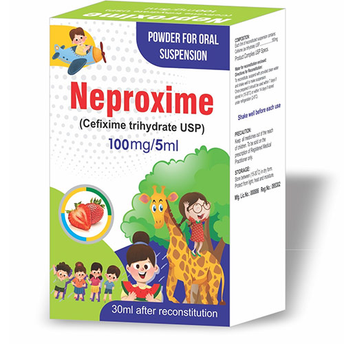 | Neproxime Dry Suspension 100mg | Cefixime (as trihydrate) 100mg | 30ml | 271.34 |