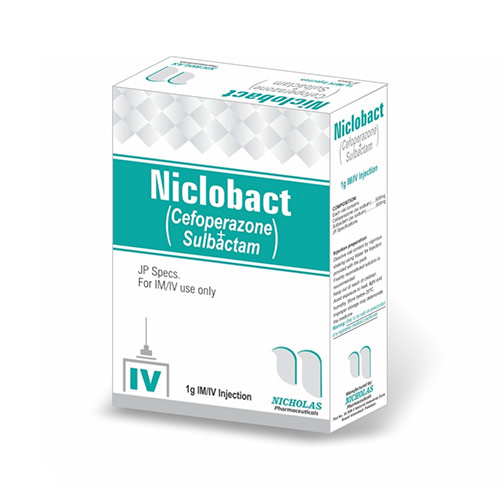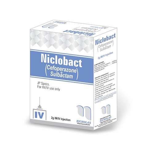 | Niclobact 1000mg Injection (IM/IV) | Cefoperazone (as Sodium) 500mg + Sulbactam (as Sodium) 500mg | 1's | 495.90 |